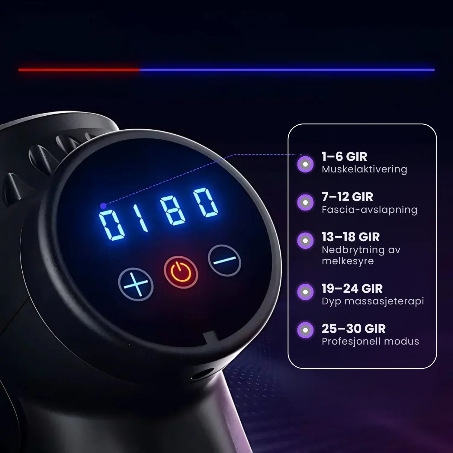 Upplev skräddarsydd muskelavslappning med 30 justerbara hastighetsnivåer, så att du kan anpassa intensiteten efter dina specifika behov.